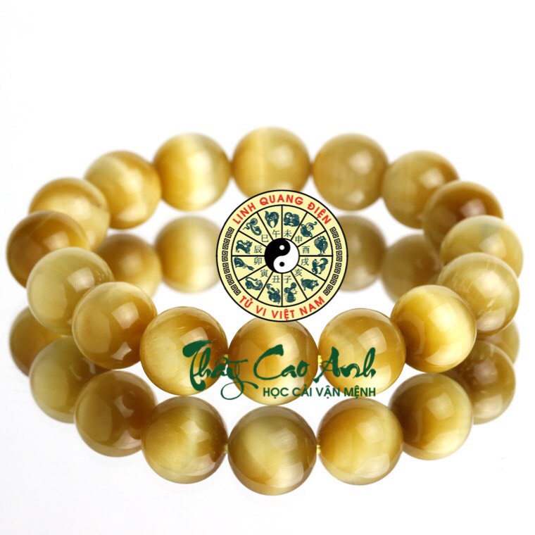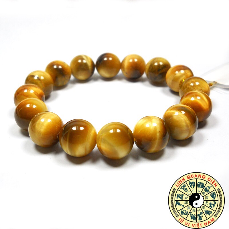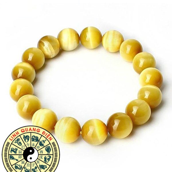 Vòng đá phong thủy mắt hổ vàng tươi được làm từ đá mắt hổ vàng. Đây là biến thể nằm lẫn với biến thể nâu vàng. Là loại hiếm gặp nhất trong tự nhiên. Nổi bật với màu sắc đẹp & có giá trị thương mại cao. Màu vàng tươi tượng trưng cho hành Thổ. Nên những mẫu vòng đá phong thủy mắt hổ vàng tươi rất thích hợp với người mang cung mệnh Thổ & mệnh Kim.